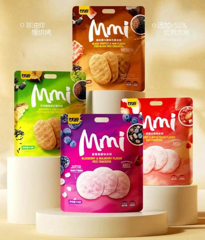此次创新,甘源直接将米饼的风味拉满:芥末鳕鱼味五黑米饼、黑松露火腿味五黑米饼、草莓白桃味米饼、蓝莓桑葚味米饼,无论你喜欢什么样的味道,都能在甘源找到自己喜欢的米饼。