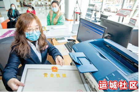 盐湖区北城街道党群服务中心为辖区商户办理首张个体工商户营业执照