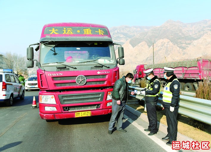 2021年2月3日,交警在运城市河津禹门口低速检查站,查验过往