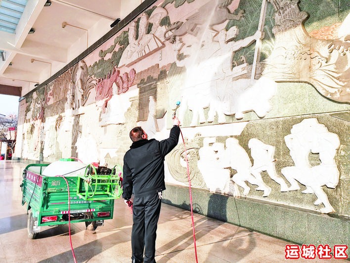 新春佳节将至,为给市民提供一个干净的休闲环境,2021年2月5日,运城市区南风广场经营管理中心的工作人员对文化长廊进行了全面清洗。