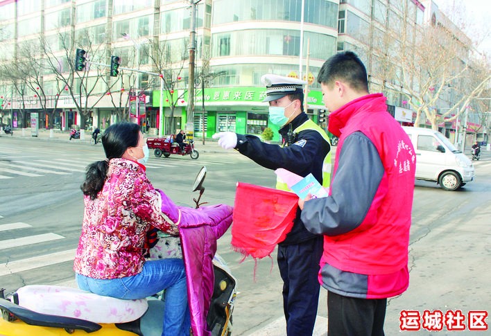 稷山交警大队城区中队携手志愿者劝导文明交通